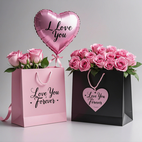 VT19 Logotipo personalizado Diseño de San Valentín para elegir Flor de amor roja Rosa Embalaje de regalo Bolsa de papel de lujo con asas