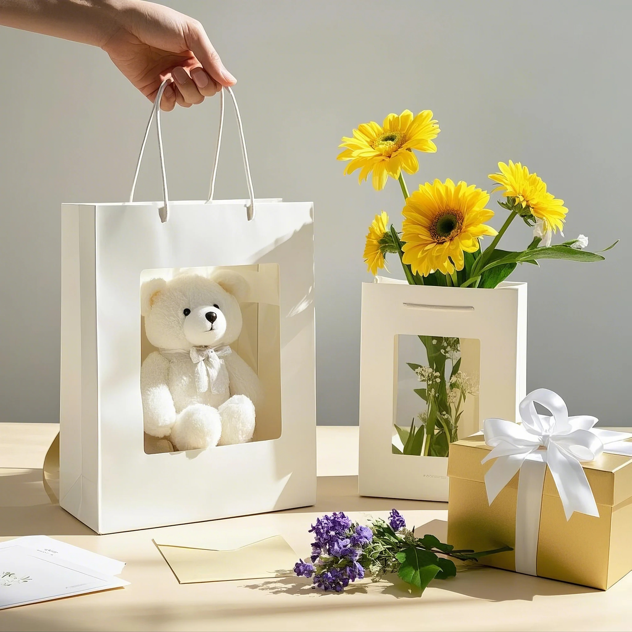 VT04 sacchetto di carta portatile regalo bianco per imballaggio di san valentino sacchetto di carta con fondo quadrato per feste